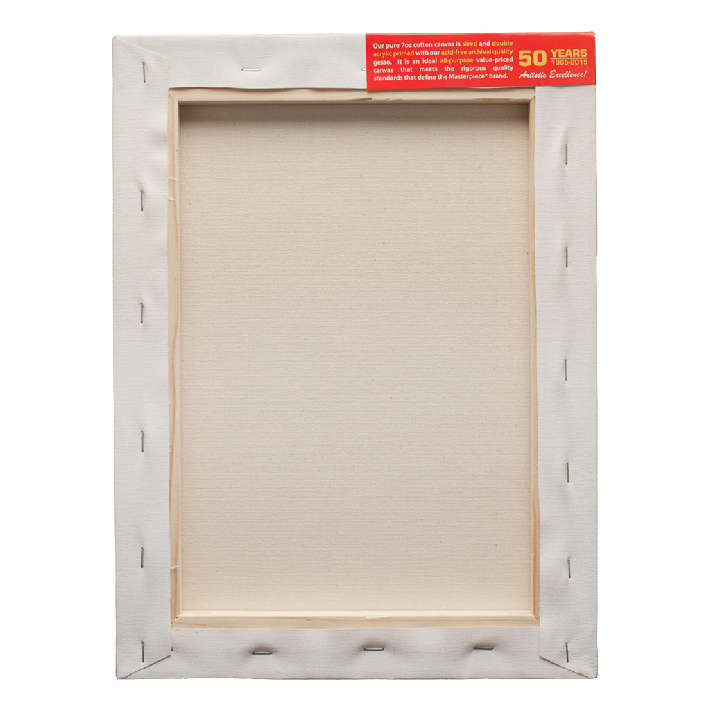 Masterpiece Classic Primed Cotton Stretched Canvases feature 7 oz canvas that is stretched using a MasterWrap™ back-stapled method with folded corners. This stretching process uses pneumatically controlled machines that yield drum-tight tension. These stretched canvases use solid wood stretcher bars (no finger joints) made from sustainable forests of the Pacific Northwest.
