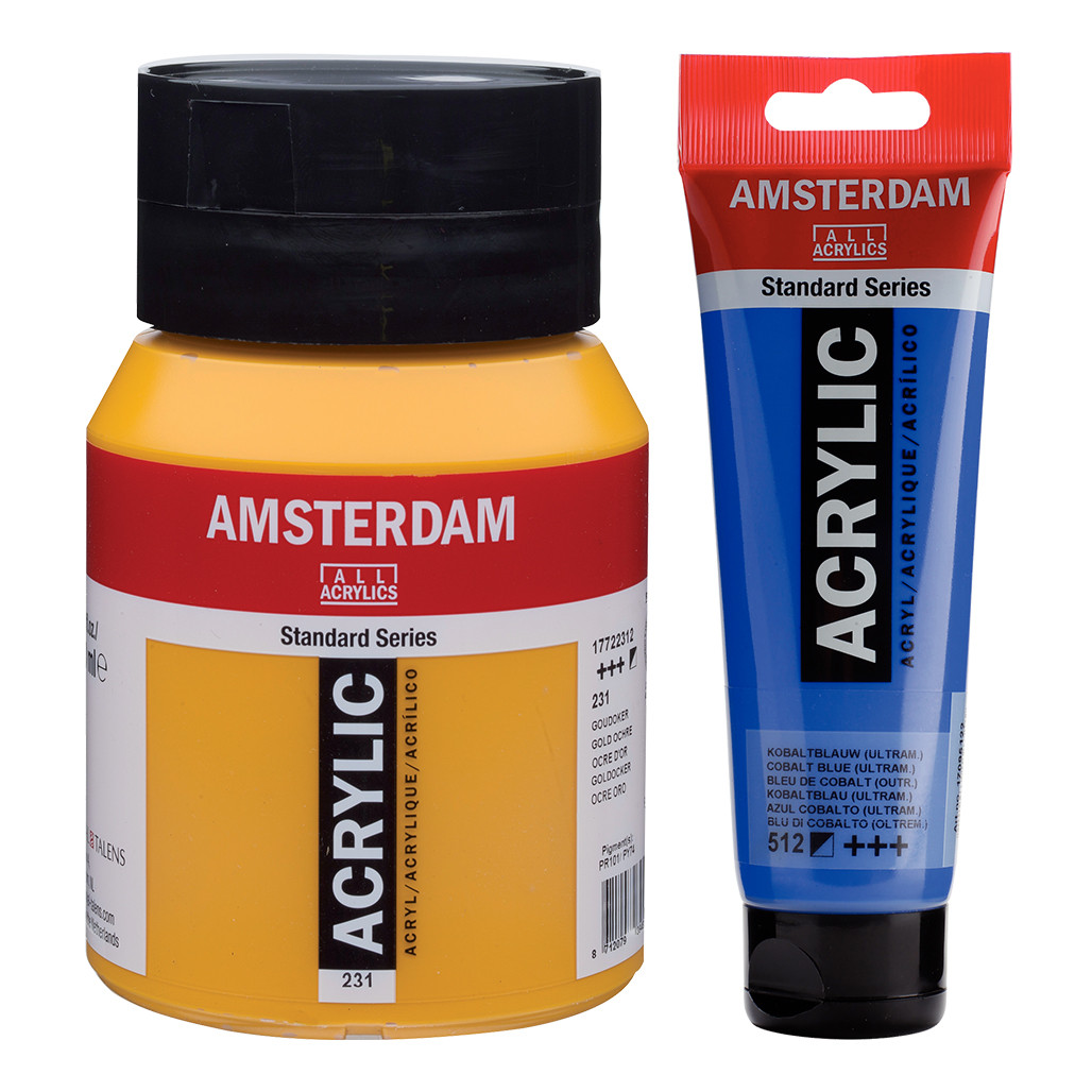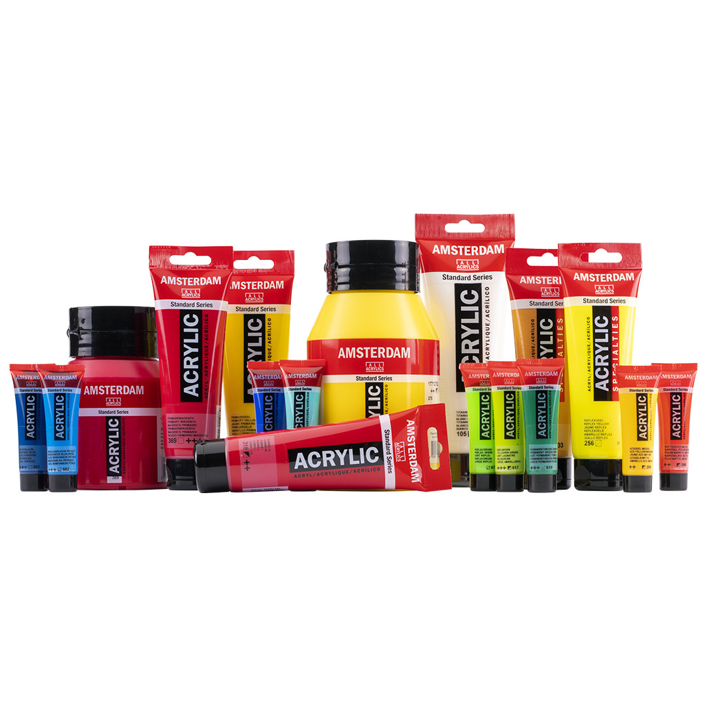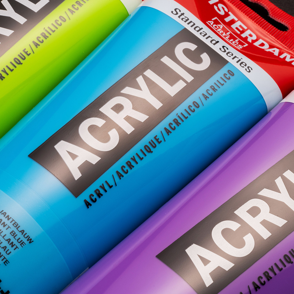 Amsterdam Standard Series Acrylics feature remarkably vibrant, traditional, and contemporary colors. They boast a high level of lightfastness, thanks to the use of high-grade, non-fading pigments in a 100% acrylic emulsion.