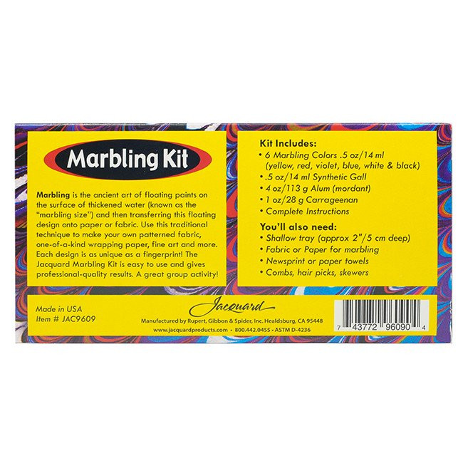 This Jacquard Marbling Kit is easy to use and gives professional-quality results. Makes a great group and party activity!