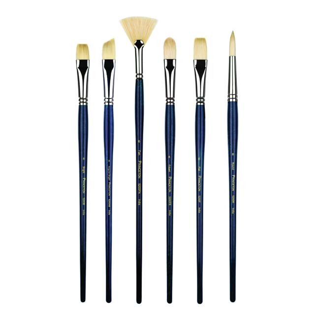 Princeton Series 5200 Ashley Natural Bristle Long Handle Brushes are made with traditional, natural hair, pure hog bristle. They are ideal for oil painting, but can also be used with acrylics.