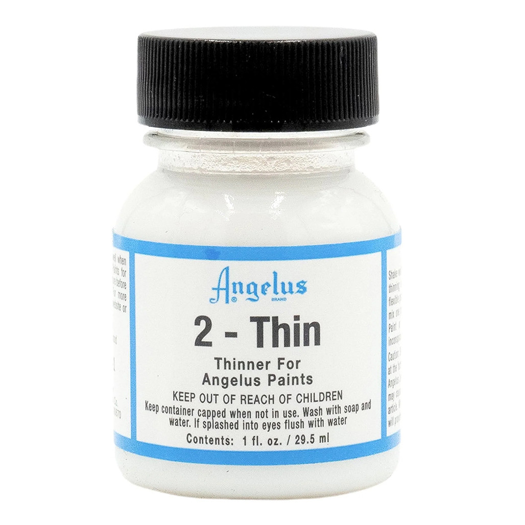 Angelus 2-Thin Paint Thinner is perfect when you need to thin out Angelus Leather Acrylic Paint. It keeps your shoe paint from clumping on a mesh surface, and it's great for thinning the paint for airbrush use on your customizations. For airbrush applications, we suggest using a 1 part 2-Thin to 4 parts paint ratio (1:4).