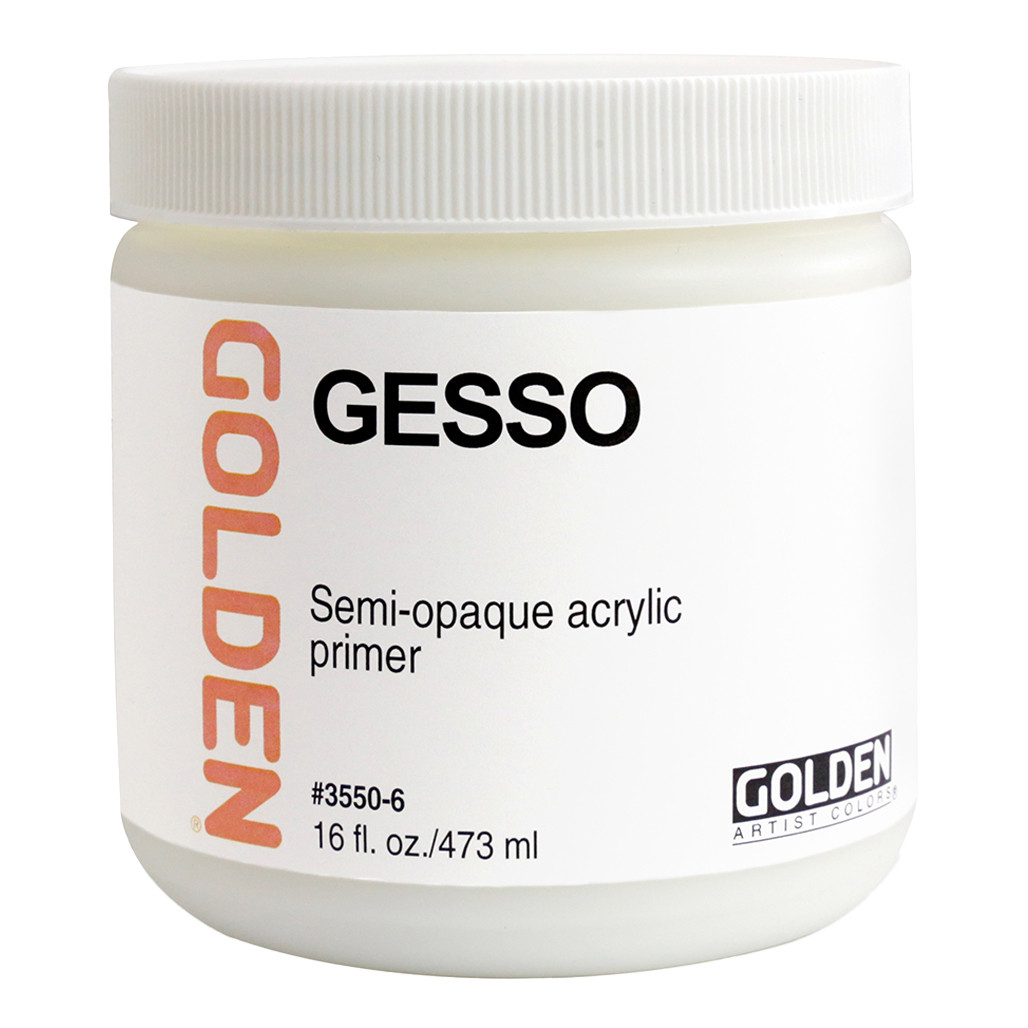 Golden Acrylic White Gesso is a flexible, ready-to-use ground that prepares the surface of a substrate, such as canvas or wood panels, to accept paints and provides tooth to promote paint adhesion.