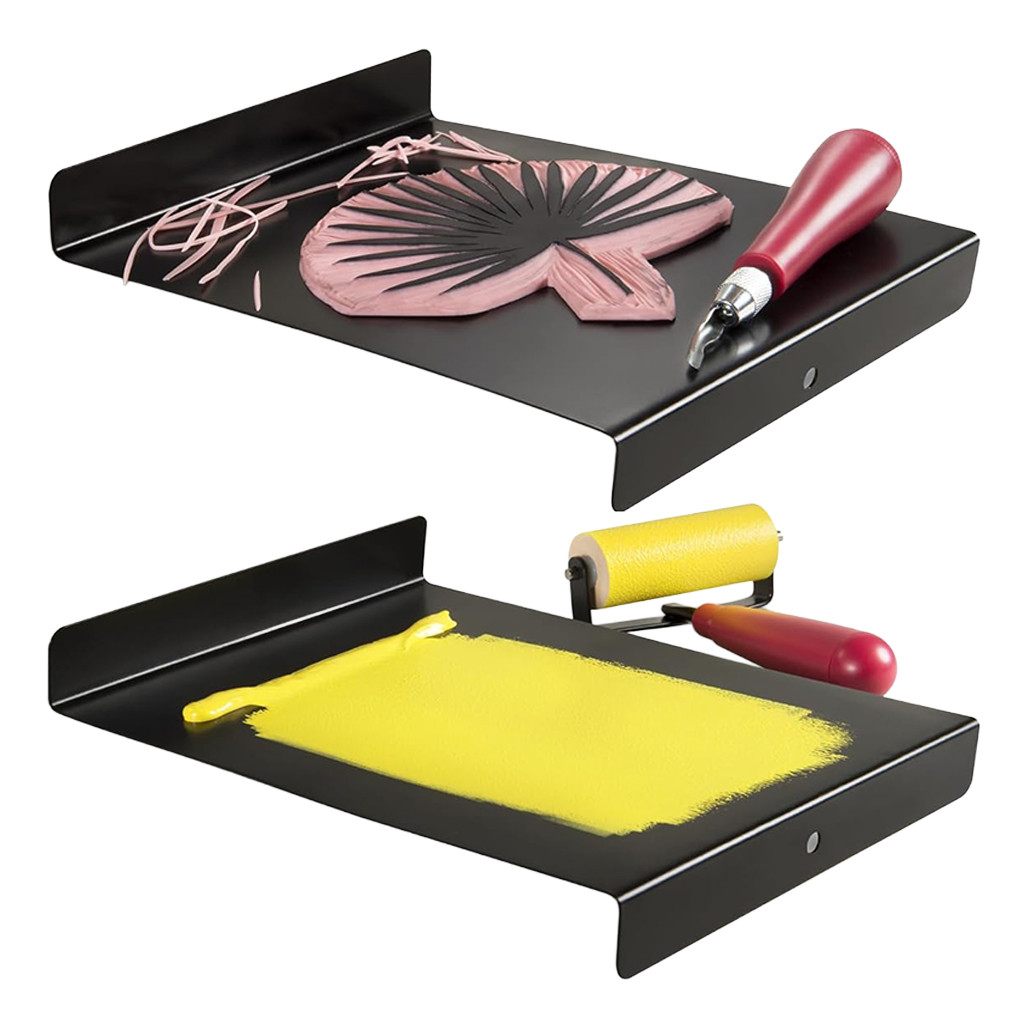 Made from powder-coated, highly durable metal, this Speedball Bench Hook & Inking Plate is a multi-purpose printmaking tool. Featuring a lip design that allows it to be easily placed over the edge of a desk or table, this bench hook gives artists more control for block carving. It also doubles as an inking plate, making the process of rolling out, cleaning up, and/or storing ink for later use a breeze.