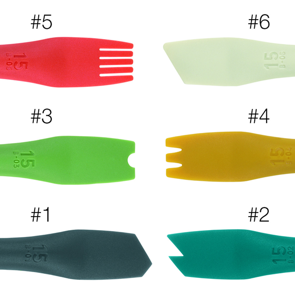 With an array of shapes and sizes from 15 mm to 50 mm, artists now have an arsenal of new tools for scraping, raking, combing, dragging and moving paints, gels, pastes, and more!