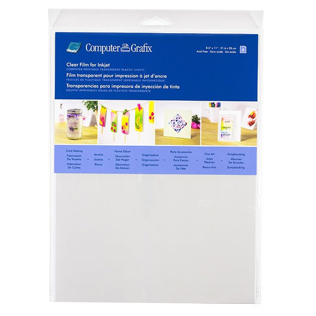 Print vibrant images and crisp text on Computer Grafix blank transparencies. These computer printable films make designing your scrapbook pages and paper crafts more creative than ever! Films are acid free and safe for archival safety. Computer Grafix films can be run through Inkjet or Laser printers/copiers to create unique designs right from your own computer. Print custom overlays, journaling, window effects, stickers, photos and even jewelry.