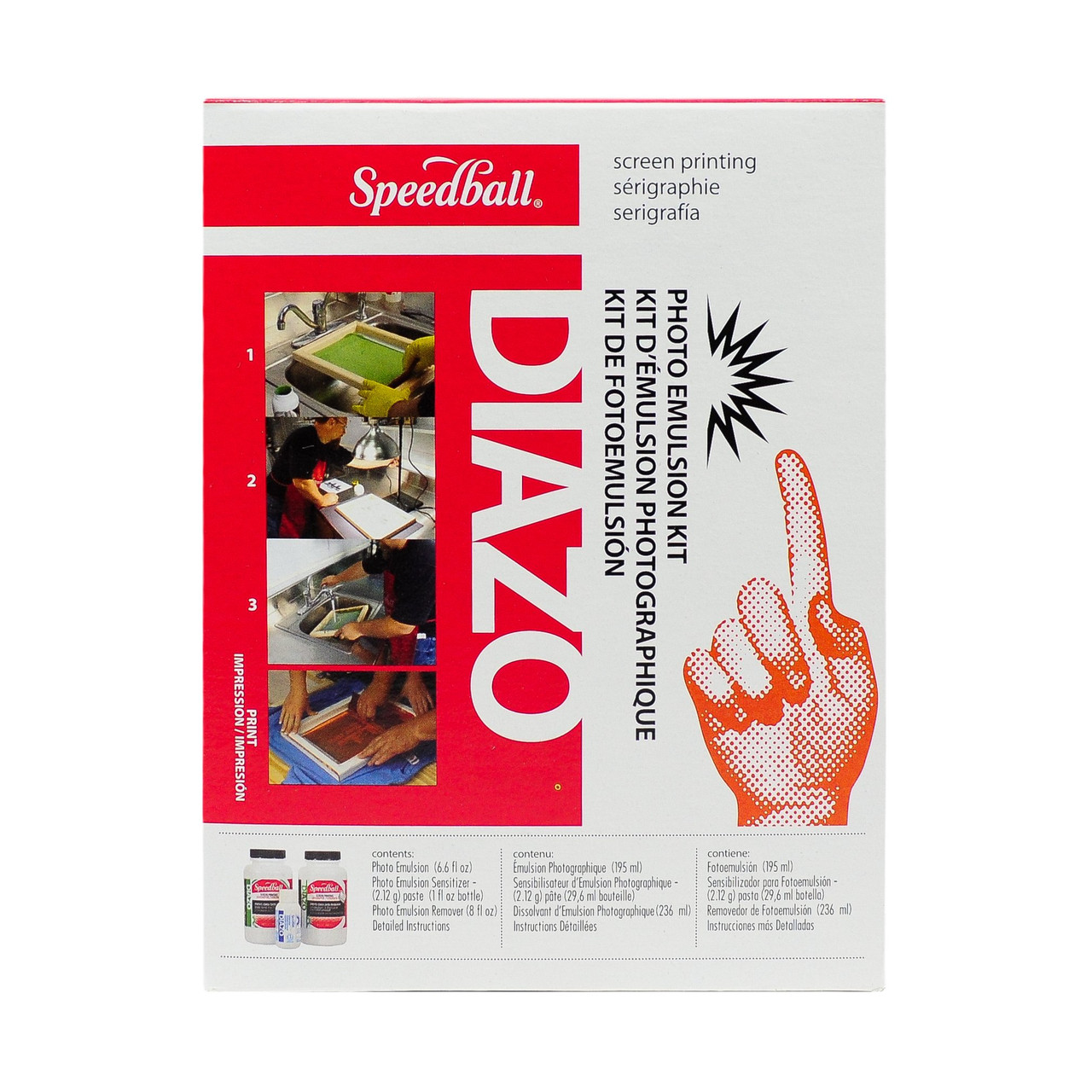 An excellent kit for use in high-quality screen printing. 7 oz. jar of Diazo Photo Emulsion, 1 oz. bottle of Diazo Sensitizer, 7 oz. jar of Photo Emulsion Remover. Complete instructions too!
