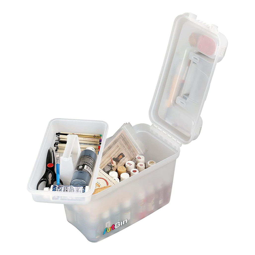 Transport and store your art and craft supplies safely in this ArtBin Sidekick Tote Case translucent polypropylene plastic storage unit.