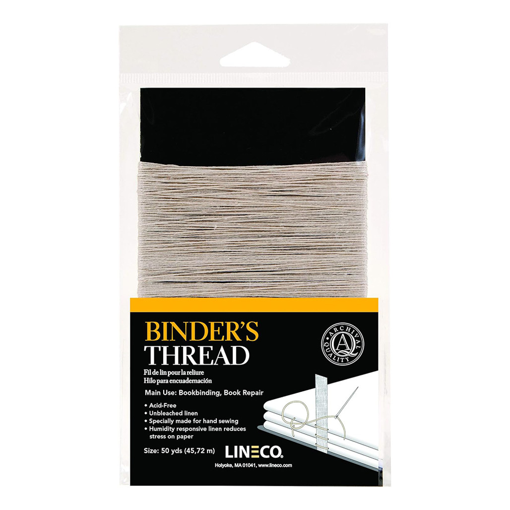 When binding a book, strong thread is needed to sew the groups of pages, known as signatures, together. This strong, genuine Irish linen thread is made for hand sewing and expands with moisture to prevent tears in the paper. Each package contains 50 yards of thread.