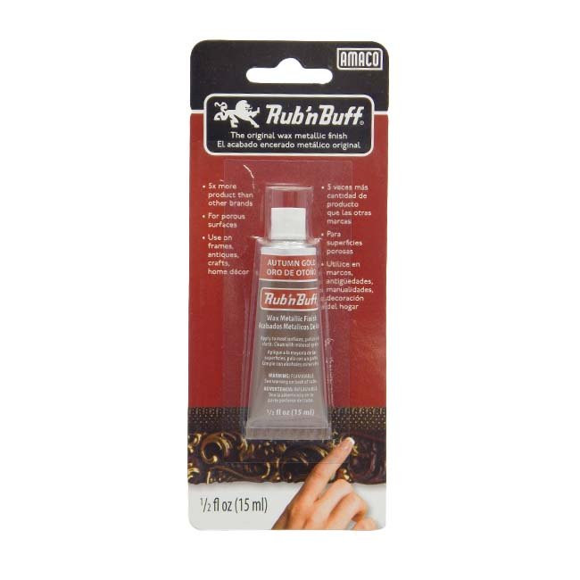 Amaco Rub 'N Buff is a lustrous wax-based metallic finish perfect for antiquing, crafts and decorating. Easy to apply, just rub onto any surface with finger or soft cloth, then buff to a beautiful luster. Rub 'n Buff® is ideal for restoring cherished antiques, stenciling, frame finishing, antiquing, home decor, restoration and crafts projects. Available in .5 oz. tubes.