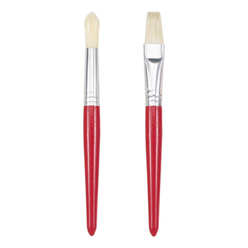 A single, inexpensive, natural bristle brush with a large handle that makes it easy for children to hold. Great for use with acrylic, oil, and tempera paint. These brushes feature firm bristles and are not suitable for watercolors.