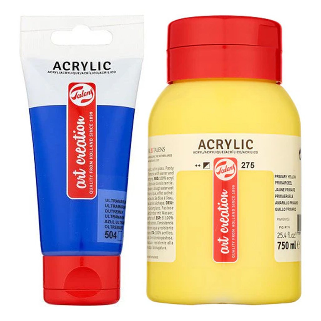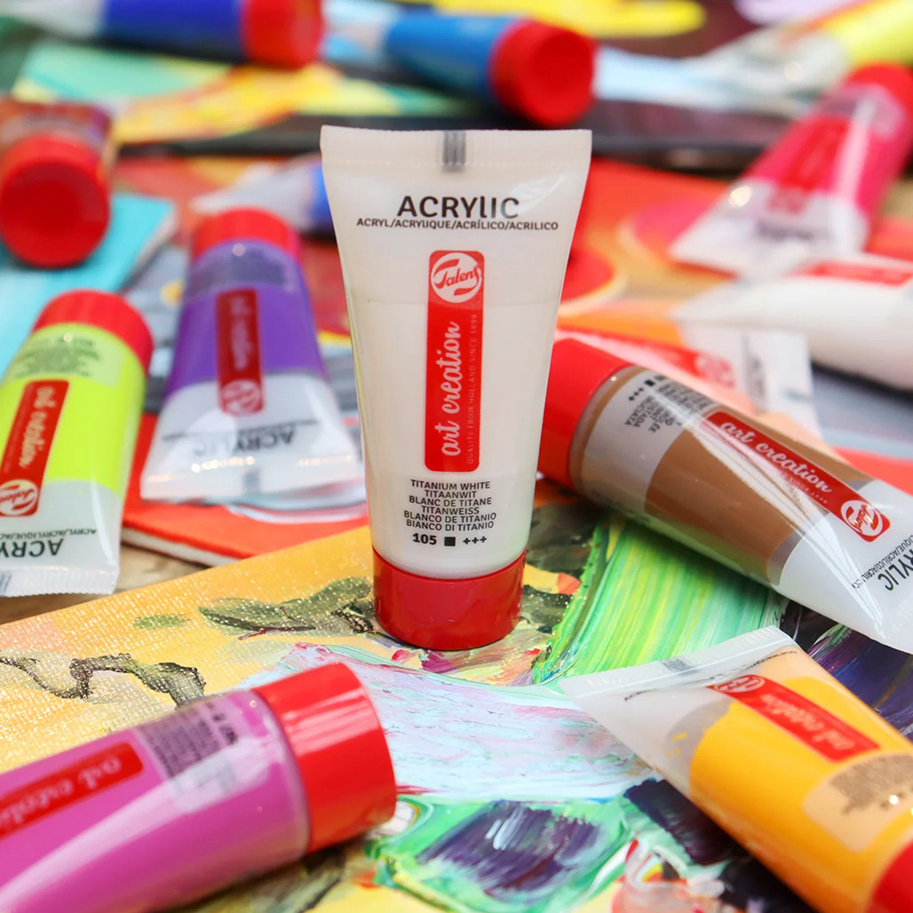 Talens Art Creation Acrylics are versatile, student and beginner-friendly, 100% acrylic resin paints. They're smooth and dry quickly with a silk-gloss finish.